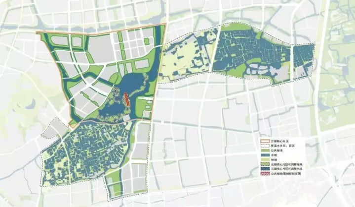 已然拉开的城市框架里,这些散落的湿地又将重新聚合。梦溪水乡,这个浪漫又柔美的名字,伴随着城市新中心的建设,成为一个宏大叙事的词汇。规划中的梦溪水乡,共分东中西三块,其中中部核心区被命名为云湖,与北面的云城遥相呼应。梦溪水乡的规模,相当于再造一个西溪湿地。