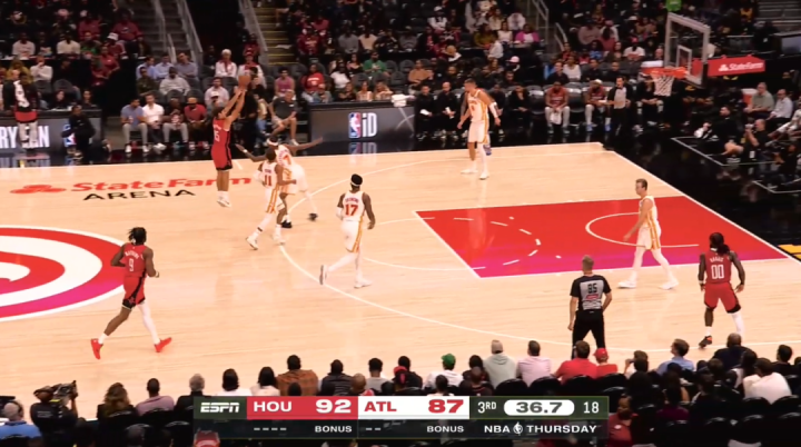 第三节末到第四节,谢泼德还轰进了3记三分,其中第三节末的三分最疯狂,刚过半场就迎着亚历山大-沃克直接干拔三分,完完全全把自信打出来了。